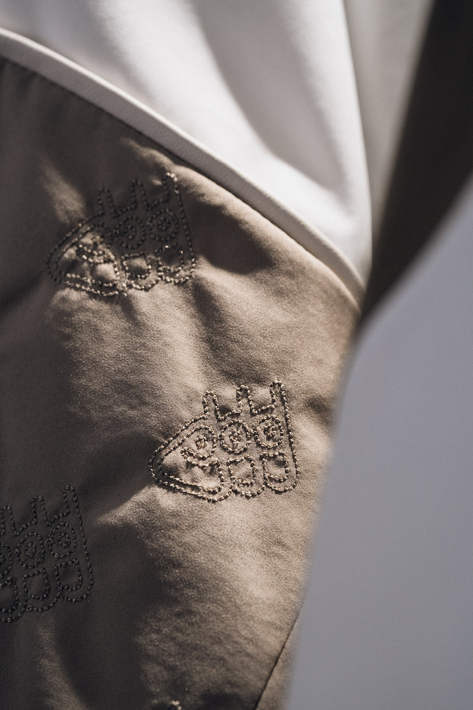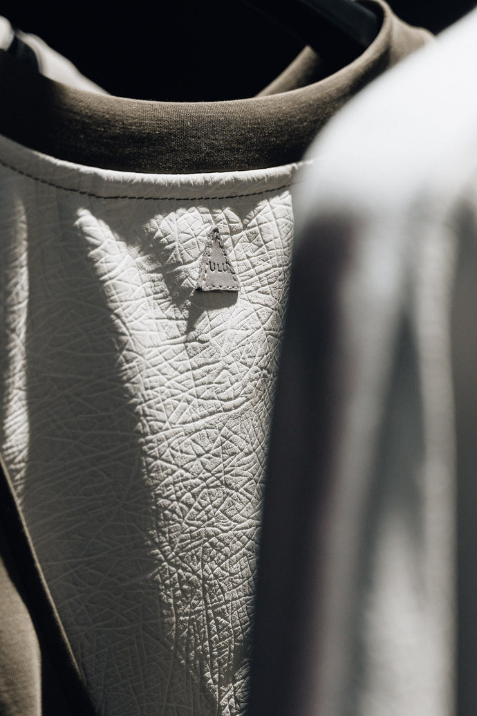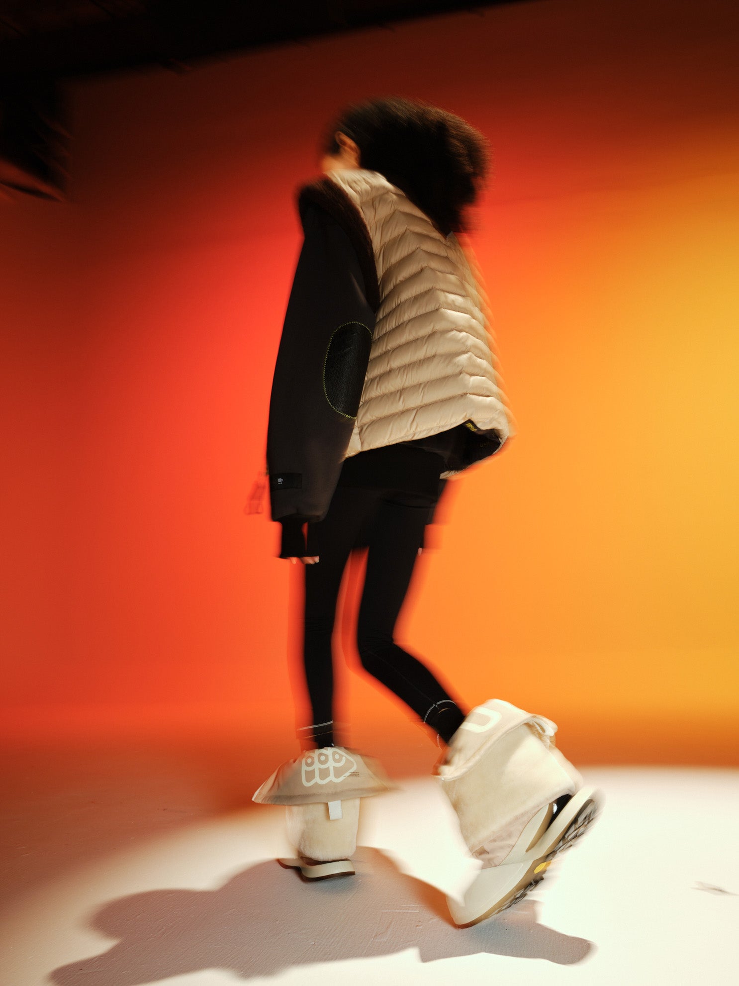 Although these garments were originally designed to complement and showcase our footwear, they are filled with fascinating details. We used a variety of materials such as leather, silk, fur, down, and fleece, giving ULU’s looks a distinctive and bold character.